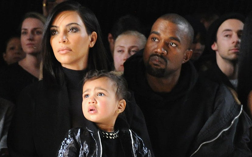 Kim, looking into the distance, seems to be pondering life's greatest existential questions, like: Should she order the black cod miso or the yellowtail? Kanye, hunched over in a cutoff black shirt, is either disappointed by his lunch or really admiring his daughter. North, one leg up in her high-chair throne, is just sitting pretty knowing that she will always be the spotlight of every photo, ever.