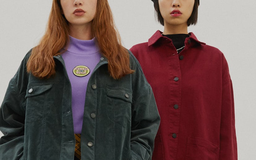 The collection is made up of 11 pieces which reimagine what three of the MTV show’s main characters would have actually worn IRL. Daria, her sister (and polar opposite) Quinn, and her best friend Jane all get a style update courtesy of Lazy Oaf. Daria’s signature green jacket was re-created with the logo of her favorite fictional TV show,Sick Sad World, emblazoned on the back; Quinn’s favorite butterfly tee was made into a fitted shirt with cutout detail across the front; and Jane’s burgundy jacket has “Go to Hell” written on the back and features a pizza patch on the sleeve.