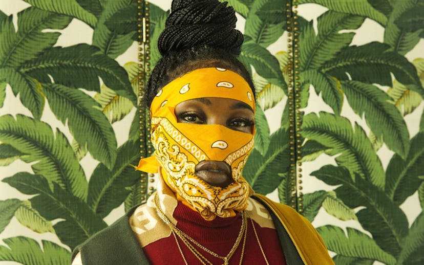 You hear Leikeli47 before you see her. Mostly because it's really hard to actually see her, since she wears a ski mask when out in public, usually with her braids propped atop her head and her eyes peeking through a slit. The mask is her cape, she’s said in the past, and makes her easy to miss (her petite size is also a factor). She wears it to keep the focus on her art and her music. “It’s a genderless, faceless, colorless, sexless way to get out there and say, ‘Have fun, dance, don’t look at me,’” she told Kitty Cash in our June/July 2016 issue. “In this mask I’m whoever the hell I want to be and talk about what I want to talk about.”