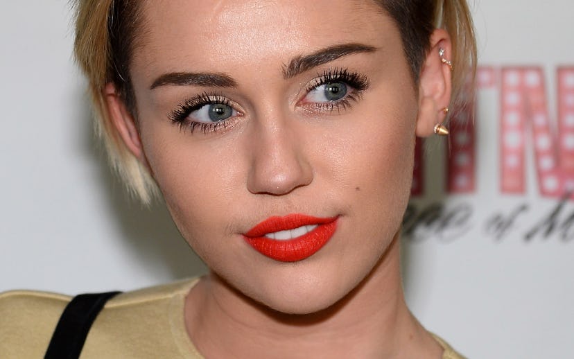 I've come up with my list--and to help illustrate it is MIley Cyrus, who rocked a pulled-together but low-key look to the opening party for Britney Spears' Vegas show. (Side note: Hating on MIley is sooo 2013, so let's be a little nicer this year.) It's not too bold, not too boring, and edgy while still totally doable for work. Everyone can pull it off--yes, even if you're a little intimidated of red lipstick--and you can put it all on in 60 seconds flat. As for doing that hair chop you drunkenly swore to your friends that you were doing come 2014? Well, that parts up to you.