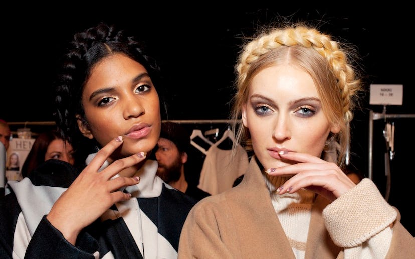If this show is any indication, geometric nail art is on its way out, and flowy layers of hazy nudes are in.