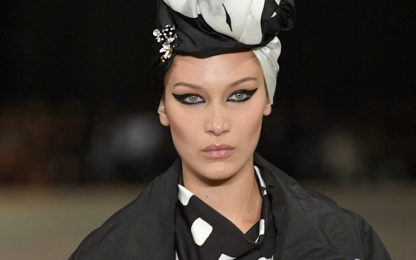 Each model wore an intense black cat eye that varied slightly from the one before, as lead makeup artist Diane Kendal created six different variations of the look for the 56 models that walked. For example, Winnie Harlow wore a thicker, filled-in angled look, while Hannah Ferguson’s wing was skinny and slightly more whimsical.