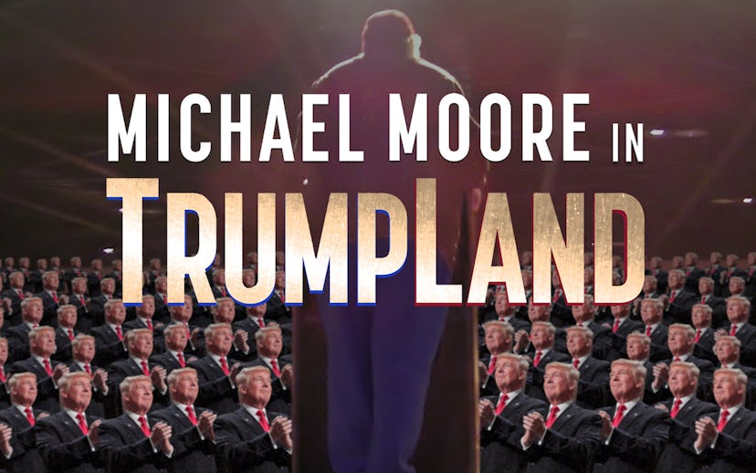 It turns out Michael Moore was doing a lot more than just tweeting over the course of this election cycle. On Tuesday, the political provocateur announced his surprise film, Michael Moore in Trumpland, which premiered at New York City's IFC Center just hours after the news broke. "We're flying by the seat of our pants here," Moore told the audience on Tuesday night. "Our goal is to have as many Americans see this over the next five or ten days."