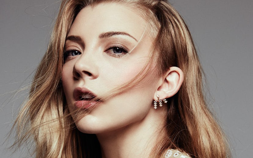 At a photo shoot in Los Angeles, in between various sultry and balletic poses, Natalie Dormer isn’t afraid to try goofy things. Dressed in sharp black angles, she peeks out from behind a big plant with her jungle-cat eyes. She grabs a leaf and fashions a quick mustache—“like Dali?” she ventures. When the photographer kindly nixes her improv, Dormer breaks out into her signature lusty laugh and, undeterred, launches into the next pose, saying, “You’ve got to try these things, you know?”