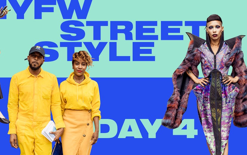 Highlights of NYFW day four? Those who dressed in tandem were hard to beat, and photorealism got real on some seriously sick 'fits. The temps are slowly dropping, so it's less like a sauna and more like autumn—so, yes, you can justify breaking out your fave layering pieces for the sake of fashion.