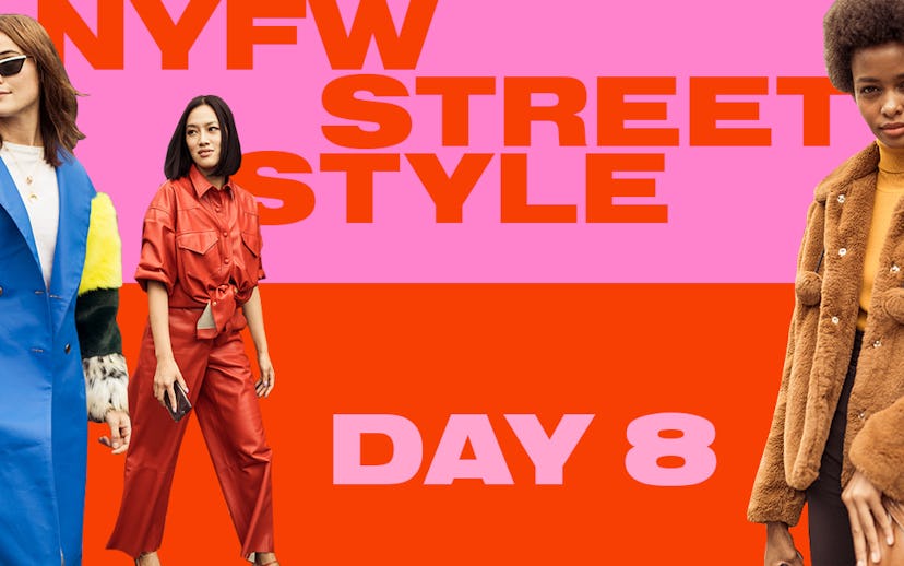 Are those tears in your eyes because NYFW is over? Or is it the rain? Or air conditioner drips? Whatever those drops may be, they didn't stop the most stylish members of New York from busting out their furry layers. On the eighth day, we saw all our favorite new trends combine with our love of bundling up. Click through the gallery below to see all the best fuzzy looks.