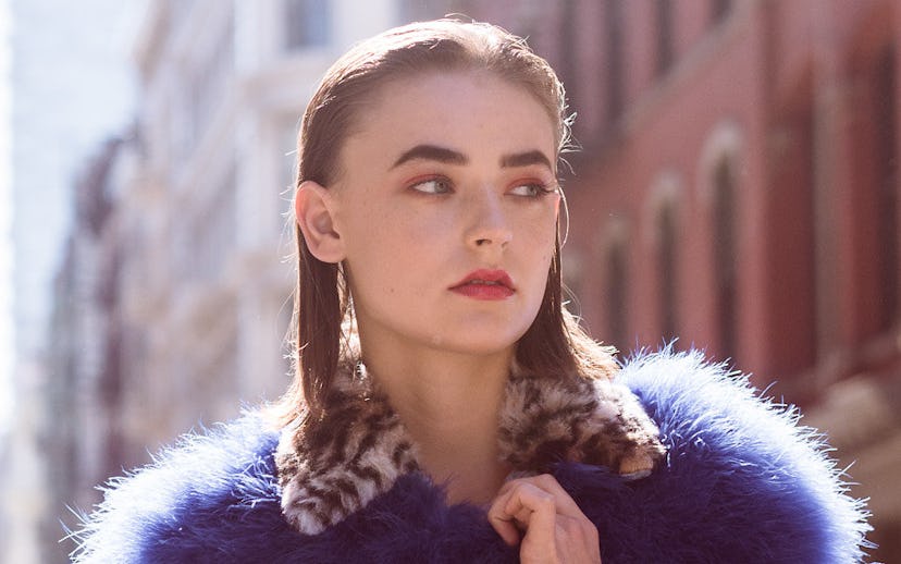 Sara Bailes, Kelsey Crop in White, $75, available at NYLONshop; The Style Club, Chloe Faux Fur Cross Body Messenger Bag in Pink, $49, available at NYLONshop; Rad + Refined, Lavender TS Shades, $30, available at NYLONshop; Ragged Priest, Burning Denim Jacket, $95, available at NYLONshop; Ragged Priest, Blazed Mom Jean, $90, available at NYLONshop.