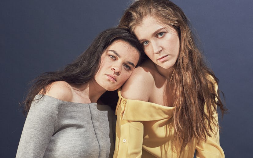 Before Hana Elion and JJ Mitchell joined musical forces, they were undergrad students at Wesleyan University. The pair first connected after hearing each other sing embarrassing songs in the bathroom of their dormitory, though it wasn't until their senior year that they wrote music together and formed their folktronica duo, Overcoats, a name they settled on because they thought it would "act as a coat of armor for us" since their songs contain vulnerable lyrics. Elion adds, "We wanted to be able to express our emotions freely and honestly, but remain protected by our name—genderless and sheltered."