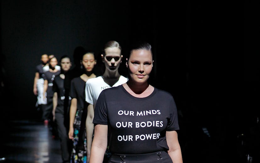 Designers, to an unheard of extent, tackled the current political climate head-on this past week, with many sending out see now, buy now T-shirts emblazoned with political statements, with proceeds going to important causes; distributing CFDA x Planned Parenthood pins; and recruiting models of various races (including those from the "Muslim Ban" countries) and sizes. By sharing their messages of inclusivity and showing support for immigrants, LGBTQI+ community, and women's rights, these fashion creatives used the runway as a political podium to make their voices and beliefs heard, whether through actual clothing or verbal statements that accompanied the shows, turning the idea of fashion as being superficial entirely on its well-coiffed head.