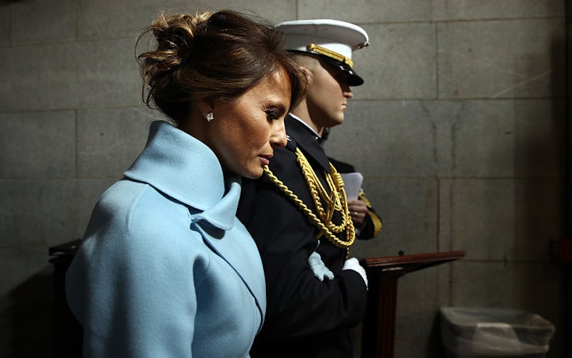 Recently, but particularly in the last week, leading up to and following her husband's inauguration, Melania Trump has been increasingly in the spotlight, and the spotlight has been incredibly sympathetic. Images and video clips from Inauguration Day, in which Melania is seen momentarily abandoned by her husband leading up to the steps of the White House, looking dejected at a luncheon, and going from smiling to dismayed following a few words by the newly sworn-in president, have gone viral.