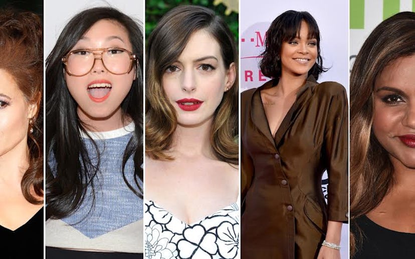 What do you get when you invite Rihanna, Anne Hathaway, Mindy Kaling, Helena Bonham Carter, and Awkwafina to join the company of Sandra Bullock and Cate Blanchett? According to Deadline, you get the blinged-out cast of Ocean's Eight. They're reporting that Warner Bros. is about to finalize the the entire squad for their female-led version of the popular heist franchise launched by Ocean's 11, which is set to start shooting in New York this October. The remake (or reboot, or reimagining) has been in development at the studio for quite some time now, with every major female star in Hollywood seemingly attached to it at one point.