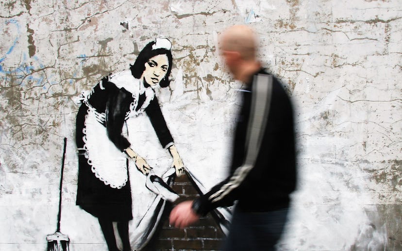 Truth be told, not many artists—especially politically motivated ones—have been able to capture and hold the greater public's attention in the same way that Banksy has. For years, the evasive graffiti artist has left his imprint on the sides of buildings (some of which have been carefully removed and sold, or placed behind plexiglass, and others which have been painted over), constructed grand, satiric amusement parks, and given people everywhere their most-liked Instagram. And yet despite the enormous amount of press and attention Banksy has garnered, the artist has somehow managed to maintain a secret identity. Many conspiracy theories have been hatched: Was Banksy a man, a woman, a collective? Did Banksy decide to make Exit Through the Gift Shop to throw us all off his true identity, Mr. Brainwash? Is Banksy really fervent collector Brad Pitt's vandalism-prone alter ego? No one ever really knew for sure, that is until a group of scientists decided to embark on a geographic profiling study that would shatter the illusion once and for all.