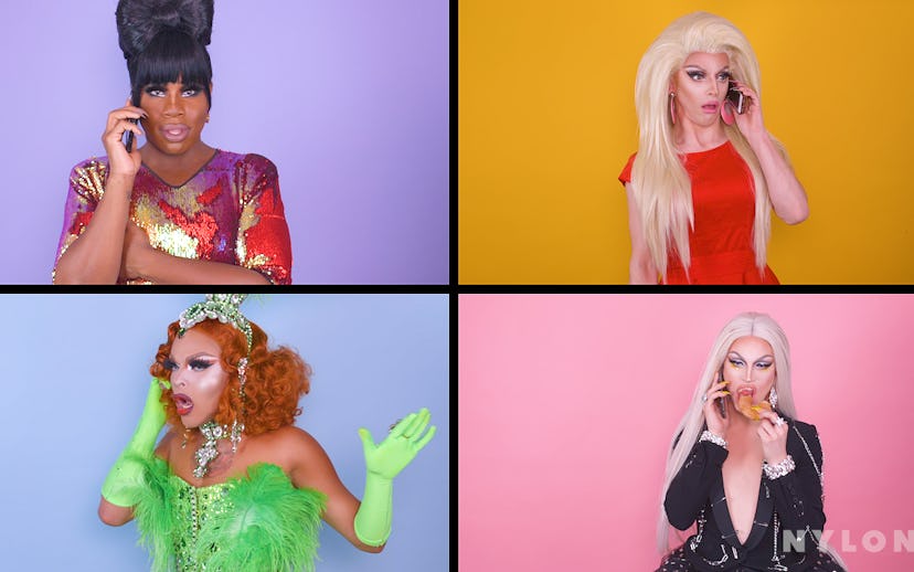 Ring, ring! It's Miz Cracker, Monét X Change, Vanessa Vanjie Mateo, and Aquaria. Category is... telephone sabotage buffoonery. Bring it to the runway... erm, actually, the four-way, girls.