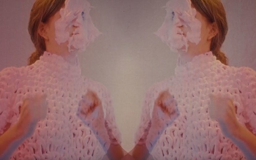 Along with releasing new music and living a double life as a touring musician, she’s also got her own label, NFNF, to co-manage with her friend. And she’s creating visuals for all Pillow Person songs, dousing herself in frosting for the “On Your Way” video and peeling plastic off her face in “Go Ahead.” In “Kitchen,” she paints herself in gold and crawls underneath a monstrous ghillie suit, making her look like a camouflaged Big Foot. Woven throughout the clip are animations by Prosper.
