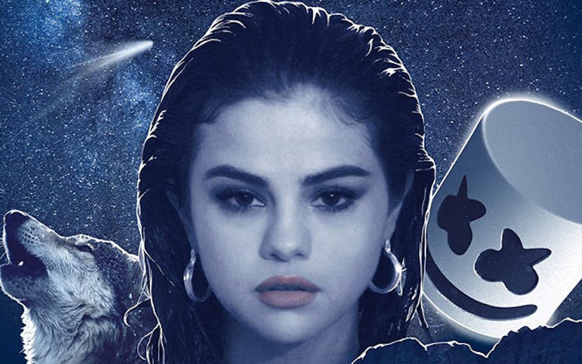 Selena Gomez released the cover for her upcoming collaboration with DJ Marshmello, "Wolves," and people are confused. Do wolves live in the jungle? Did the person who made this just learn how to use Photoshop? What's happening here?