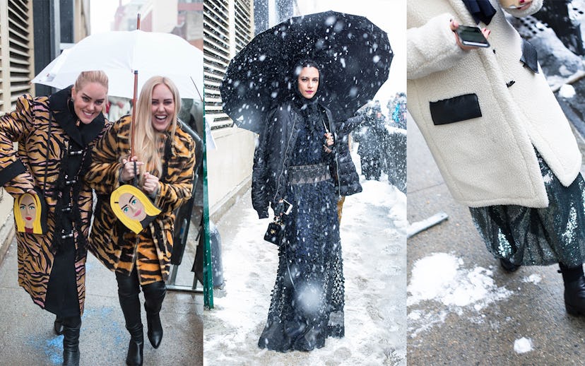 Ah, snow days. A day meant for hanging around the house in your pajamas, binge-watching Netflix, and eating junk food. However, sometimes you just have to get out there and venture out into the storm. Just because the snow is coming down doesn’t mean your sartorial choices have to suffer either—and fashion show-goers proved this to be true during NYFW’s blizzards last month.