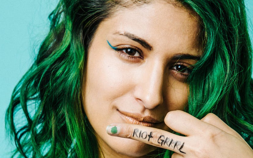 So rather than just grumbling about it, we decided to revamp our spring-beauty game, inspired not by the weather but by the anarcha-feminist rage within us that doesn’t go away just because the sun is shining. Our latest beauty icons? The punk-rock feminists of riot grrrl, who have inspired us since the ‘90s with their girls-to-the-front sensibilities—and who look damn good while doing it.