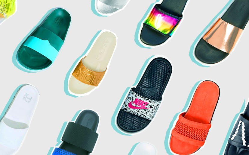 It's officially sandal season, and there's no time like now to try something new. Forget your strappy, difficult sandals and go for the new shower-slide trend, instead. We think these are the most comfortable, (ath-lesiure anyone?) chicest sandals of the moment. Now, you don't have to style them with Nike socks like a true high-school soccer girl, but we won't judge you if you do. Go for it.