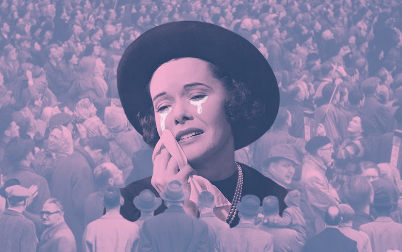 These are the cries we're told to feel embarrassed over; they have no place in our sanitized world. They're artifacts of a time when women howled at the moon with abandon, when love and pain were things you could perform in public without fear of being judged. And while maybe this type of crying in public will never be something you feel comfortable doing, or is something you feel like will make you look unhinged, just think, the next time you see someone crying in public—or the next time you find yourself doing it too—that "unhinged" is just another way of being open, and there's beauty in that type of vulnerability, even if it is tinged with pain.
