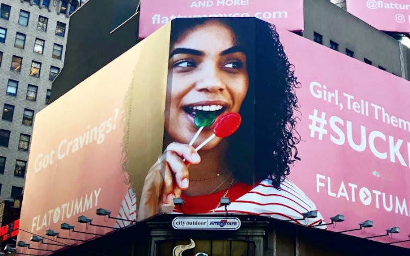 A new billboard in Times Square advertising Flat Tummy Co. has (rightfully) incurred the ire of the internet, with many calling for it to be removed.