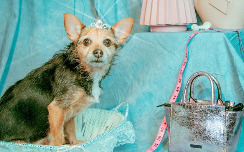 So, let’s try it. Let’s edit down the excess and savor the essentials. Ahead, we’ve gathered a bunch of our favorite mini bags from our favorite not-so-mini brands. Oh, and, as you might notice, we’ve also paired them up with tiny dogs from Animal Haven. Their names are JLo, Buttercup, Luna, and Dawn and they’re all looking for homes. You can learn more about adopting them, here.
