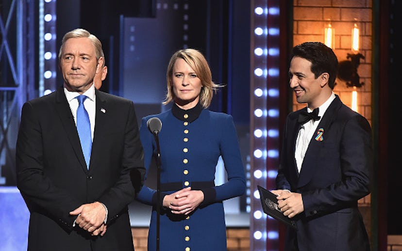 Spacey and Robin Wright got into character, as Frank and Claire Underwood from House of Cards, to present the Best Musical award, which went to "Dear Evan Hansen."