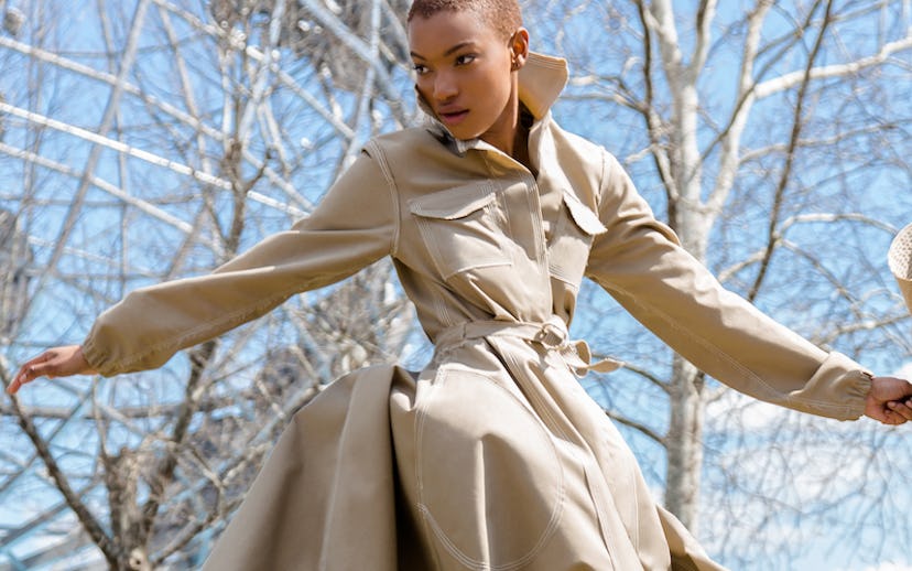 As Reese told WWD, she kept the edges raw for outerwear pieces as a reminder that “this is a very imperfect world and imperfect situation.” The industrial feel of the collection is meant to show that these garments were created by real people, “not a couture atelier in Paris.”
