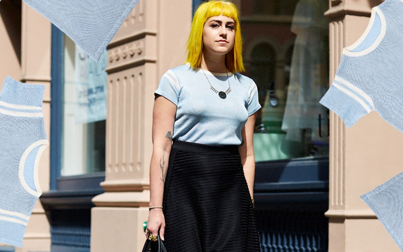 This month, NYLON staffers took on the challenge of styling one item of clothing in three different ways. We chose one of our favorite up-and-coming brands, Calle Del Mar, and Aza Ziegler, designer behind the label, created a new take on the T-shirt in a knit fabric. We automatically feel in love and had to take it to the streets to test out.