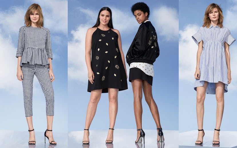 Victoria Beckham for Target, Plus Black Embellished Bug Dress, $60, available 4/9/2017 at Target; Victoria Beckham for Target, Bee Print Button Down Top, $30, available 4/9/2017 at Target; Victoria Beckham for Target, Black Satin Embellished Bug Bomber Jacket, $70, available 4/9/2017 at Target; Victoria Beckham for Target, Black Twill Skirt With Scallop Trim Pocket, $30, available 4/9/2017 at Target.