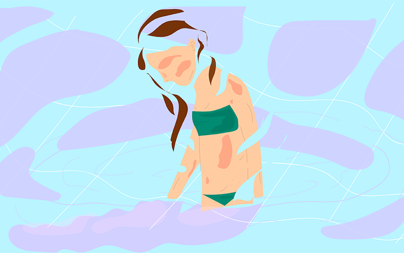Most of the time, it’s not swimming itself that poses a problem, it’s a fear of even being in the water (especially in open bodies of water like lakes or the ocean!) “When you feel that panic reflex kicking in, ask yourself, Am I really not okay?” says Stanard. Pull yourself back to the present, and realize that it's really unlikely that you'd be attacked by sharks or jellyfish or... pool monsters.