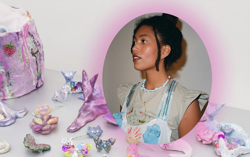"We met Ali Bonfils when she came by our Tribeca shop a year ago with her older sister Lulu Bonfils, who had recently been our model," says Haas. "When she visited us again at our shop in August, she was wearing a necklace we really admired. When we asked where it was from, she told us she had made it, and had been inspired to start making her own jewelry after she visited Cafe Forgot." Based in Brooklyn, Bonfils uses Sculpey, a type of polymer clay, along with repurposed gems, beads, and charms, to make necklaces that are equally inspired by Victorian aesthetics and friendship bracelets.