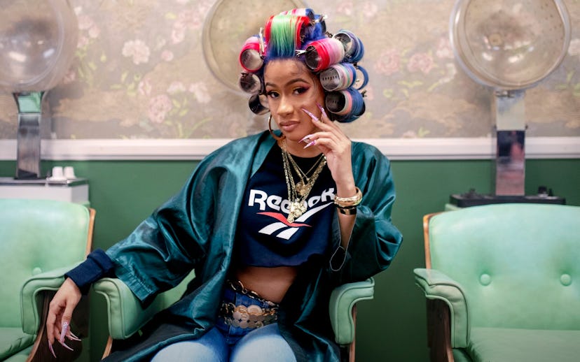 Reebok's new ad opens with a familiar nail salon scene—really, I could almost smell the flat irons and Marcel curlers through my screen—complete with a roller-set wearing Cardi and dated decor that feels like home. There's even a makeshift friendship (common, when you spend an hour or more under the dryer), with Cardi spilling the tea on a boy who hasn't called her back in days.