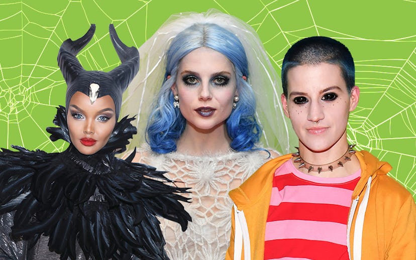 There are two types of Halloween people: those that are content to casually celebrate the season with a Hocus Pocus marathon and a cat-ear headband, and those that go all out. Many celebrities fall firmly into the latter category, especially when it comes to Halloween makeup looks. Some celebs fully committed: Ariana Grande donned facial prosthetics for her Twilight Zone beat, Heidi Klum didn't hold back with her Franken-alien-corpse look, and I've yet to figure out where Cardi B's Poison Ivy ponytail ends. Others were so spot-on, we can't help but stan (see: Justine Skye as a very accurate Shego).