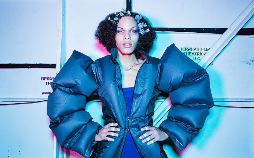 Among the looks were blow-up asymmetrical skirts, crop tops, and a Victorian-sleeved inflatable parka modeled by Maya Monès, which is now a part of Seattle's Museum of Pop Culture's "A Queen Within: Adorned Archetypes" exhibit, a show produced by Barrett Barrera Projects, that explores six feminine archetypes through fashion. The coat singlehandedly embodies the AW '17 ethos: It's a wide-shouldered, cinched-waist, A-line piece that demands its wearer take up space, styled to accentuate a feminine hourglass silhouette. And it falls into the exhibit's "Mother Earth" archetype, playing on another aspect of the collection's inspiration.
