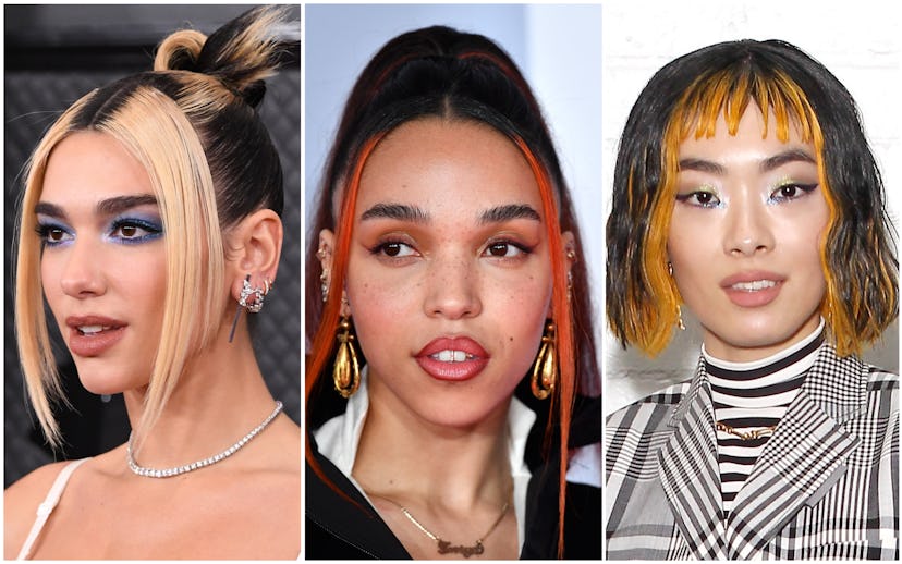 Whether its neutral stripes of honey brown and blonde or electrifying neon hues, celebrities are revitalizing the in-your-face hair trend that, much like with exposed roots, has been viewed as cringe-worthy for the better half of the last decade. Made popular more recently by stars including Dua Lipa, J.Lo, FKA twigs and more, the revitalized take on the trend borrows from hair techniques popular in the past, like babylights and face-framing.
