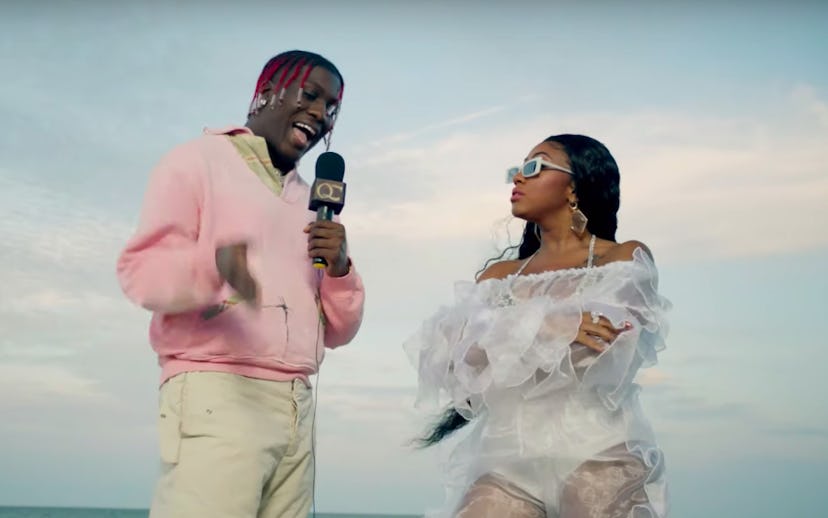 The rapper's prominent spot in the video is a huge nod to his recent admission that he wrote most of the lyrics to the song for the group. There is a part in the video where Yung Miami stands next to Yachty during his broadcast, the music stops and he instructs her on what line she should say next and how to best deliver it. Miami gives it a try, and the song resumes with the catchy line "I bet your lil sister wanna look like me. I bet your lil brother wanna fuck on me." It's a cute wink at fans who've been harping on the collaboration.