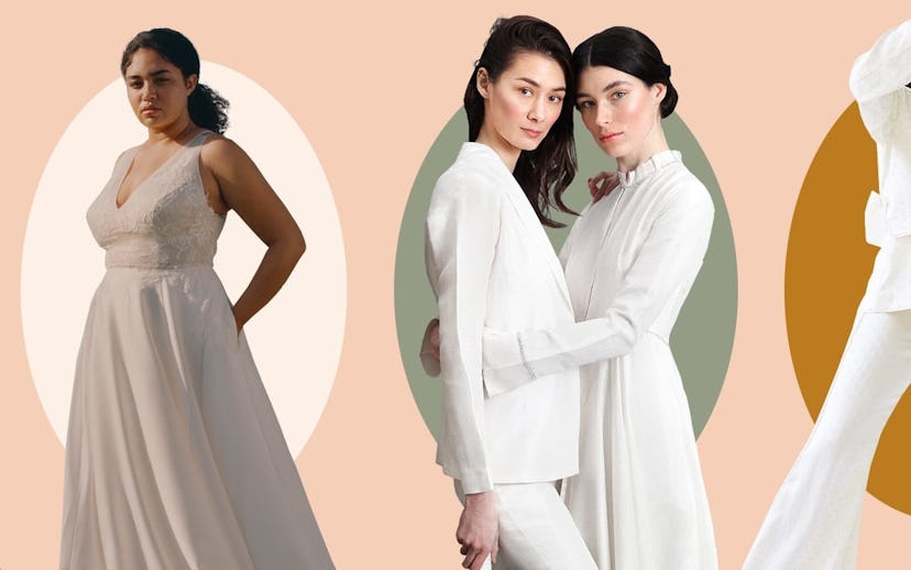 After realizing that "there was such a missed market for wedding dresses with a ready-to-wear approach," she began launching tightly curated collections of fashion-forward midi dresses in Swiss dot–like fabric, satin pantsuits, ruffled jumpsuits, and maxi shirt dresses. Her latest collection takes it a step further into the ready-to-wear territory with a blazer dress, a loose utility jumpsuit, and a spaghetti strap mini dress. "I think more women are wearing what they want to wear [to their weddings]," she told me. "They are still honoring the traditions and meaning of weddings, but choosing to wear something that best suits their personality and their style."