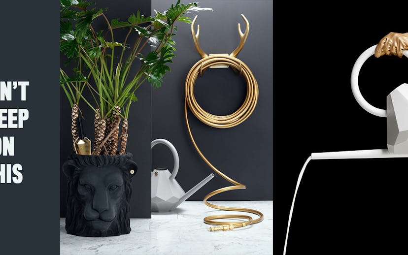 While my thumb isn't even the slightest bit green (you should see the state of my house plants), I still want to have a leopard-nozzled, eucalyptus green garden hose of my very own, and leave it hanging chicly on a cool-but-creepy giant claw mount. And I want to tend to my struggling-to-exist plants while wearing these gold gardening gloves. Because even if my plants aren't thriving, I can still look good, you know?