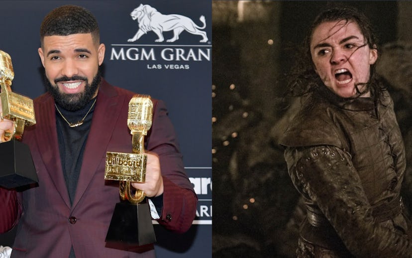 Drake used his Billboard Music Awards acceptance speech to praise a queen, Arya Stark, and Game of Thrones fans are worried that it will doom their mighty hero. "Shout-out to Arya Stark for putting in that work last week," the rapper said while accepting the Top Billboard 200 Album award, nodding to Arya's epic scene during the Battle of Winterfell.