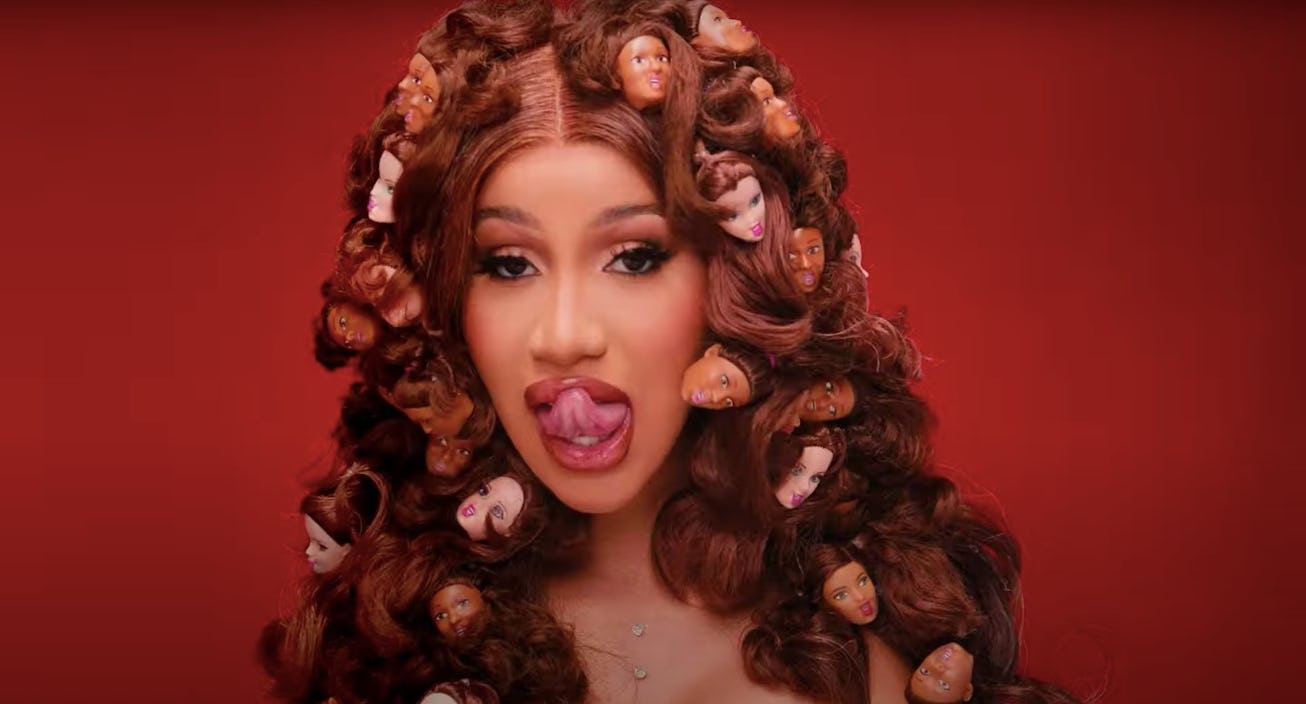 Directed by Tanu Miano who's worked with both Katy Perry and Rosalía, "Up" opens on a shot of Cardi with her foot planted on the chest of a cement figure, laying on the tombstone of "2020." She's in funeral wear but Cardi B style, which means her black corset and headpiece are dripping in crystals, with her long, black braid running all the way down her back. She begins her story — "Once upon a time, a bitch said I was ugly..." — and the video turns up ten-fold after that (as do the lyrics). At one point, as Cardi B spits out the call-and-response bar: "Broke boys don't deserve no p*ssy," a legion of black and brown barbie heads that have somehow been stitched into her wig shout back in chorus: "I know that's right!"