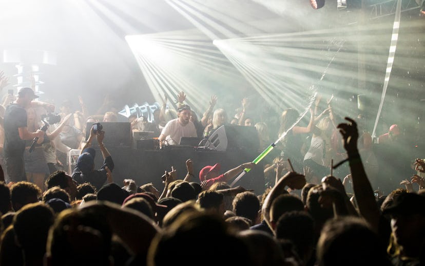 There's a moment in 2012 I don't think I'll ever forget. I was a high school senior, obsessed with EDM and rave culture, and at my first Coachella Festival. After splitting up from my friends who wanted to get food in between The Weeknd and Dr. Dre, I found myself alone at Girl Talk's set. Initially, I felt weird not having someone I knew by my side. But eventually, I forgot about everyone else entirely. Here I was, surrounded by drug-addled teens and young adults trying to recapture the glory days of their youth — and they were all having the time of their lives. Girl Talk pulled fans on stage to dance alongside him while giant balloons, beach balls, and stuffed animals flew all around the crowd. I felt like a part of a whole.
