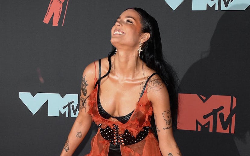 Halsey Debuts Rainbow Roots On The MTV VMA Red Carpet