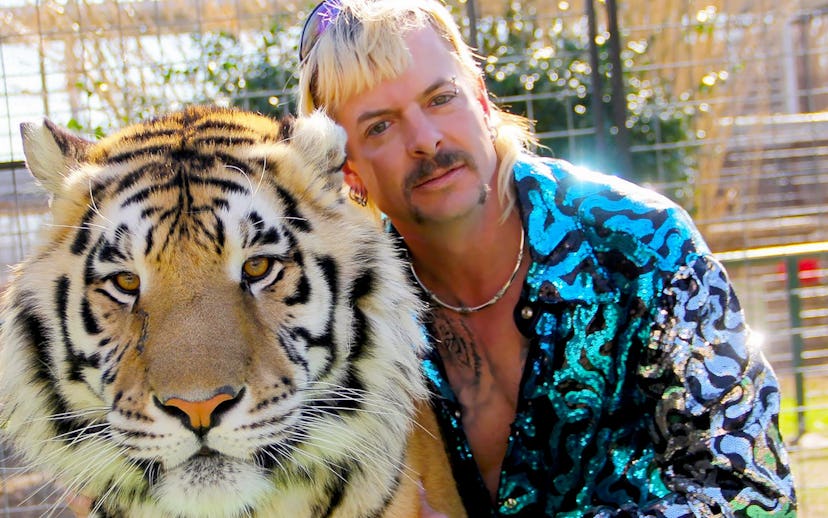 Less than ten minutes into the first episode of Netflix's wacky and wildly popular new true crime docuseries,Tiger King: Murder, Mayhem and Madness, an employee at the Greater Wynnewood Exotic Animal Park in Oklahoma says of their former boss, Joe Exotic: "Joe is an entertainer by nature. He was pretty much the star of his show." It's as true a statement as any about the series' titular character — the self-described Tiger King who, before getting sentenced to more than two decades in prison for his involvement in a foiled murder-for-hire plot, was as widely known for his claim to be the most prolific tiger breeder in the U.S. as his outlandish personality.