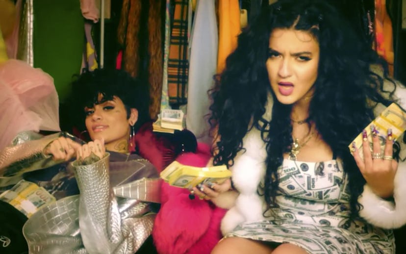 The song, which features the two singers brandishing Champagne flutes and stacks of cash after looting a luxe boutique, comes across as a playful homage to headline-grabbing glamorous grifters of recent fame—but we can't know for sure. The video opens with a recording of a fake 911 call reporting a robbery perpetrated by two girls bearing an uncanny resemblance to two well-known singers (Kehlani and Doulia, duh). Security camera footage, courtesy of what they call a "Rich Girl Camera," shows the pair luxuriating prior to making a Bonnie and Clyde-style getaway in a convertible.
