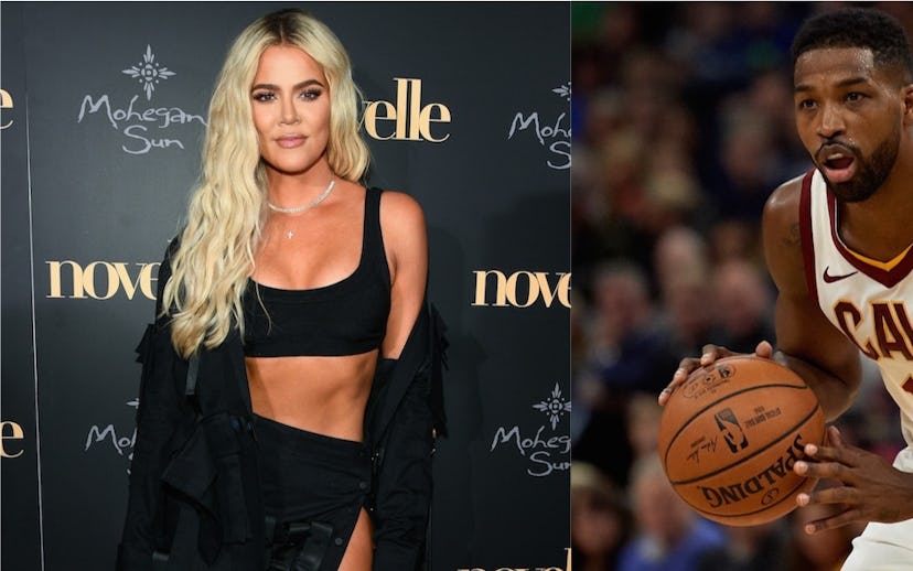 On the latest episode of Keeping Up With The Kardashians, the first of a two-part season finale, Tristan Thompson's scandal with Jordyn Woods unfolds on-camera. Khloé Kardashian is shown finding out about it in real time, per a detailed recap of the episode by People. Following this, while reading a text conversation from Thompson out loud to Scott Disick, Kardashian claims that Thompson threatened to kill himself in one message.