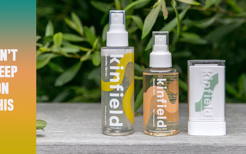 Kinfield currently has two other products: Waterbalm, a universal moisturizer in the perfect on-the-go stick form, and Sunday Spray, a cooling aloe mist that's perfect for soothing sunburned skin or cooling you down mid-hike. As a trio, they make the perfect remedy for any outdoor adventure you may be having, whether it involves a backyard dinner party or climbing a mountain.