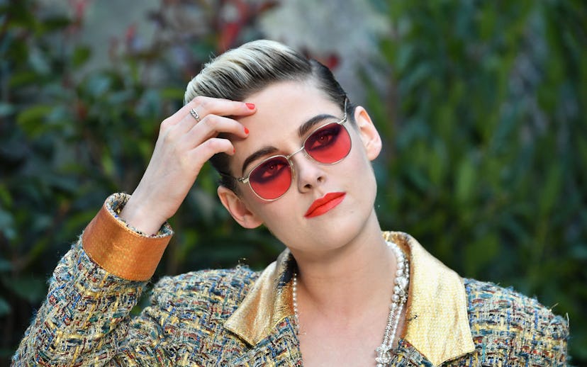 And, wow, that jacket—the whole outfit, really—is incredible. Taken from Chanel's Pre-Fall 2019 collection, it consisted of ombré leather pants, the aforementioned tweed blazer with no shirt underneath, and Doc Martens. Stewart accessorized with red-tinted sunglasses, red nails, and red nail polish, resulting in the most fiery look imaginable.