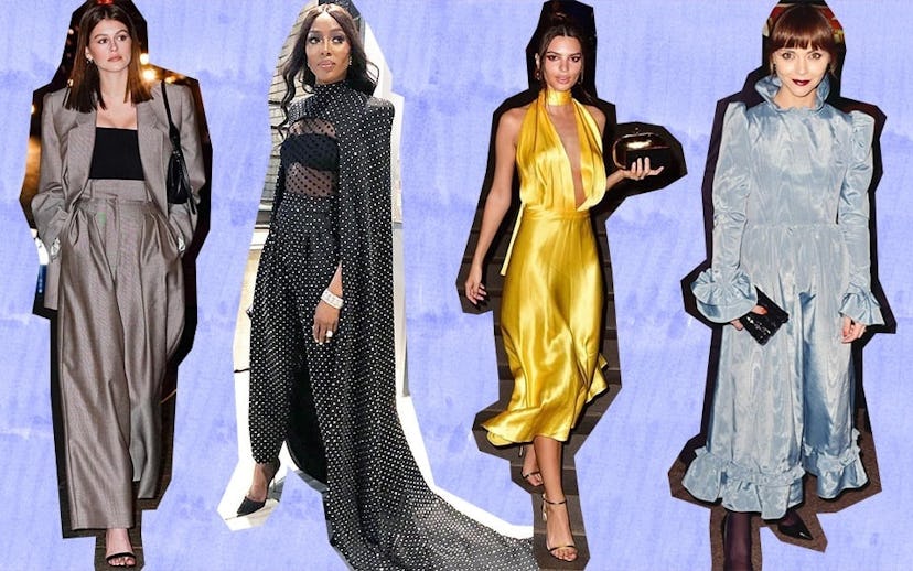 Campbell rocked the jumpsuit to end all jumpsuits, with a bold-shouldered cape thrown over the top, which honestly, I'd wear that to my own wedding if I had the chance or the budget. Kaia Gerber rocked the ultimate Marc Jacobs power suit (yes, *that* suit that Lady Gaga had everyone talking about; Gerber just had it tailored a little more). Despite the confusing coupling, Chloë Sevigny and Luka Sabbat's punk-goes-prom look, complete with a corsage, has me itching for a ballgown, some Converse, and a cheap drink at the next function, in the best possible way.