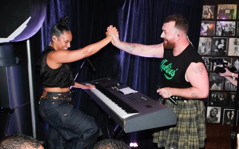 Around 11 p.m. Lady Bunny grabbed a microphone to try and clear people from the stage, signaling that Smith was about to come on. The crowd didn’t dissolve at all, but excitement raced through the room. Just after 11 p.m., Smith took the stage as Lady Bunny’s voice sounded out from the DJ booth explaining that Smith would have another friend play piano for him: Alicia Keys. Keys (fittingly) is an excellent pianist, and together, the two performed a duet of “I’m Not the Only One.” At the final chorus, the crowd broke into a rhythmic clap and sang along. Long after the pair absconded back behind the curtain, all anyone could talk about was their performance.