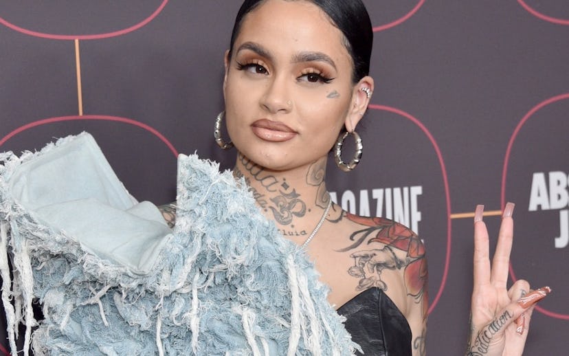 Please don't ask me what is on Kehlani's shoulder because I have no idea. At first I thought it was a shearling stole, but upon closer inspection it looks like shredded denim. Moving on beyond the mass of mystery fabric, the singer's look hits all the classic club girl points: leather mini dress, flawless nails, big hoops, and an immaculate nude lip.